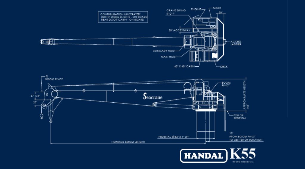 Pedestal mounted, precision slewing ring, ram luffing, box boom