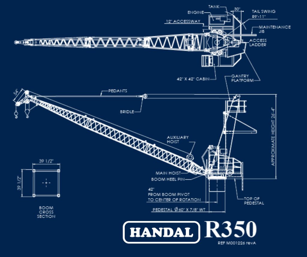 Pedestal mounted, precision slewing ring, rope luffing, lattice boom, pin-on gantry